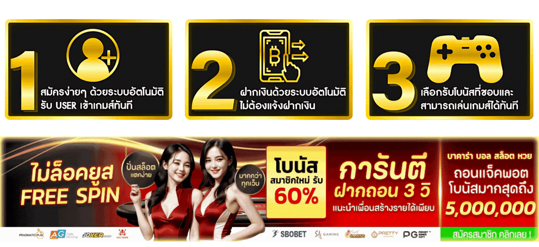 ตอบ : แจกเครดิตฟรีสำหรับสมาชิกใหม่ โบนัสฝากแรก 100% โปรแนะนำเพื่อน คืนยอดเสีย และกิจกรรมแจกรางวัลพิเศษตลอดทั้งปี